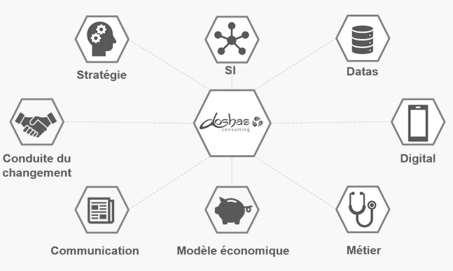 DOSHAS CONSULTING est un cabinet indépendant et « pure-player » de la santé numérique. Depuis bientôt 10 ans, les consultants chez Doshas Consulting ont une approche globale et pluridisciplinaire de la santé, en ayant accompagné plus de 70 clients. Le cabinet intervient sur les projets numériques tant pour les établissements de santé, les organisations de professionnels de santé libéraux, des acteurs institutionnels nationaux ou régionaux, et des start-up de la eSanté. Nous nous sommes entourés d’une communauté d'experts spécialisés dans leur domaine (juridique, data, cybersécurité, conduite du changement, gestion de programmes). Le rôle de Doshas Consulting est d'être le chef d'orchestre de ces compétences au service des projets de santé numérique.